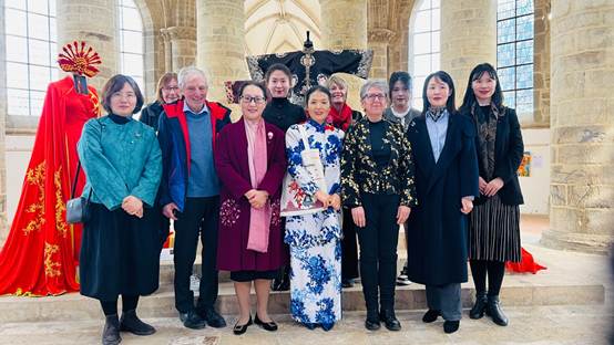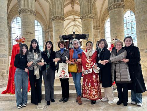 博士生导师梁惠娥教授、服装系副主任邢乐副教授、贾蕾蕾老师等参加“2024年第三届法国诺曼底大区‘中国风登陆诺曼底’中法文化节”。在此次文化节中,梁惠娥教授团队承办“‘相逢一甲子,以衣话桑麻’中国传统服饰文化与创新设计作品展览”、服饰文化学术讲座、刺绣文化体验等活动。