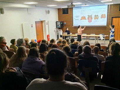 展览期间,梁惠娥教授团队受邀在库塘斯托马斯--佩斯凯职业学校报告厅,面向在校师生与社会人士展开两场学术报告。