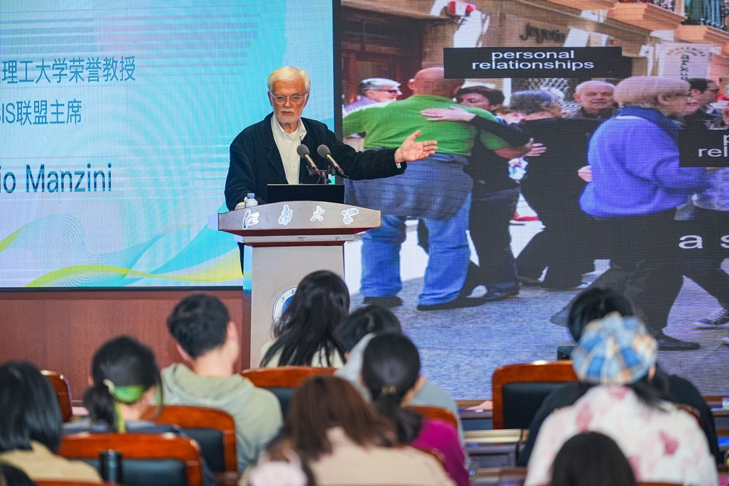 堵国成在致辞中对Ezio Manzini教授多年来对江南大学设计学科发展给予的重要支持表示感谢,他指出,Ezio Manzini教授是可持续设计领域国际最权威的学者和理念先驱,被誉为设计界的思想家,其不断开拓性的设计理念和理论引领了可持续设计的发展思潮;他表示,作为“体验设计前沿方法与技术”学科创新引智基地最资深的专家之一,希望教授持续支持江南大学设计学科的发展,共创设计协同创新的新局面。
