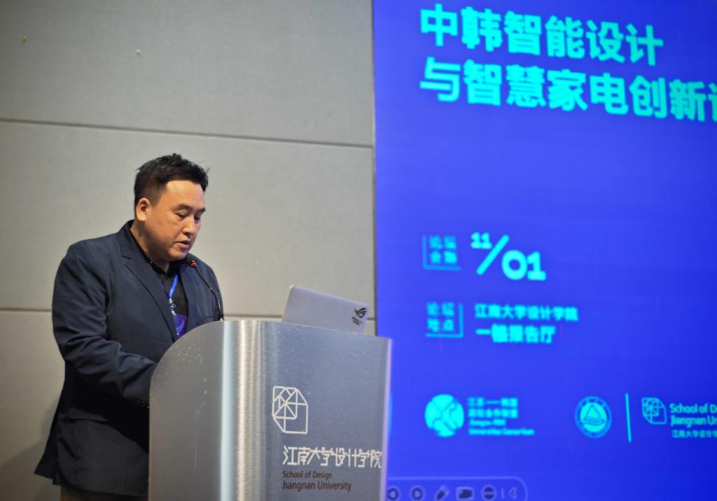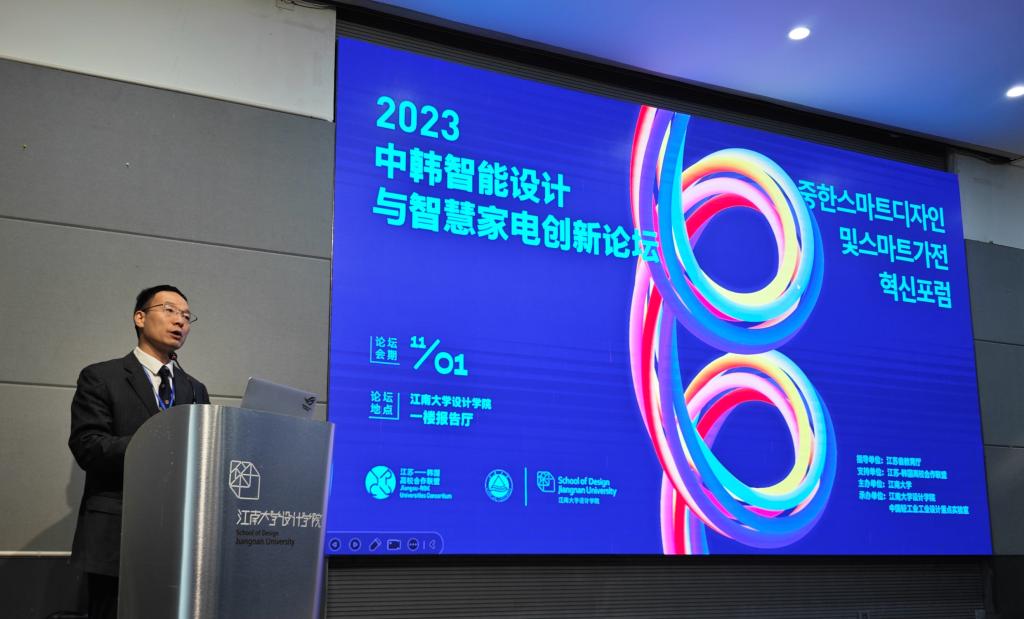 堵国成代表江南大学对参加论坛的中韩嘉宾表示欢迎,他指出,近年来江南大学的综合实力和办学影响不断深化,国际影响力持续提升。江南大学将继续加强与各界合作,以设计为驱动,整合多学科的资源优势,培养更多具备智能设计能力的优秀人才,推动智能设计在家电行业的创新与应用。