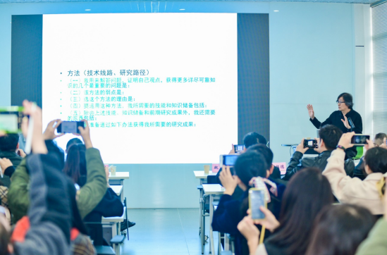 浙江理工大学崔荣荣教授结合申报项目的选题类别、成果形式与设计学科设计研究路径做了精彩演讲,重点分析了近年来国家社科基金、国家艺术基金、教育部人文社科基金等高层次项目的相关统计数据。崔教授以自身专业领域与研究经历为例,指出了凝练课题研究方向和开拓研究路径的方法,并提出应当增强从项目申报、成果产出到评奖转化的良性循环。