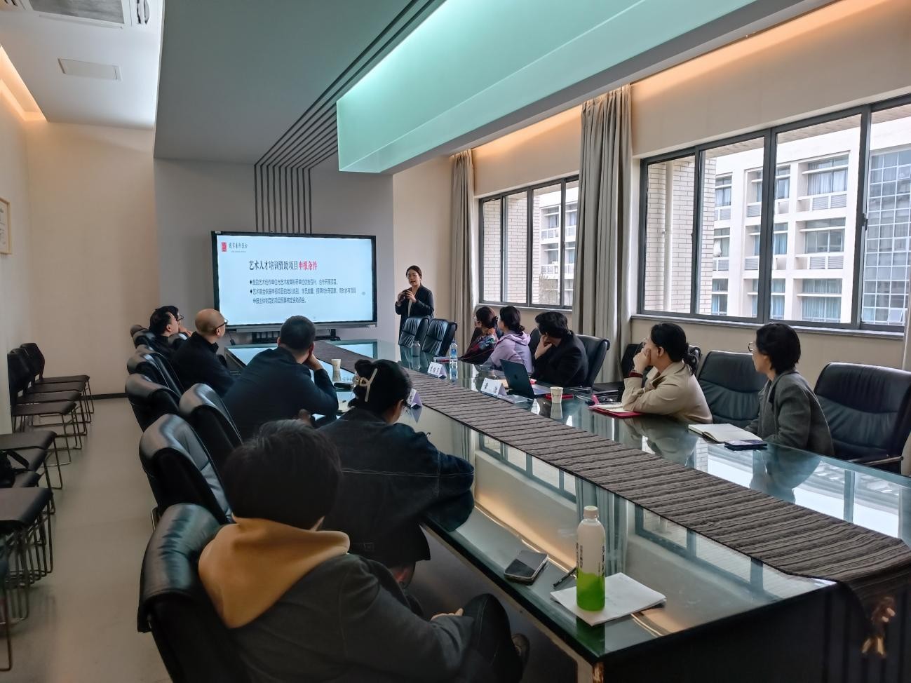 会议邀请到了江苏省第十六届哲学社会科学优秀成果奖二等奖获奖者邓嵘教授、2024年度国家艺术基金立项者李振宇副教授、章洁副教授进行辅导,社会科学处副处长沈张帆到会指导,本年度国家艺术基金申报教师、成果奖预申报教师及部分青年教师参与了本次辅导活动。