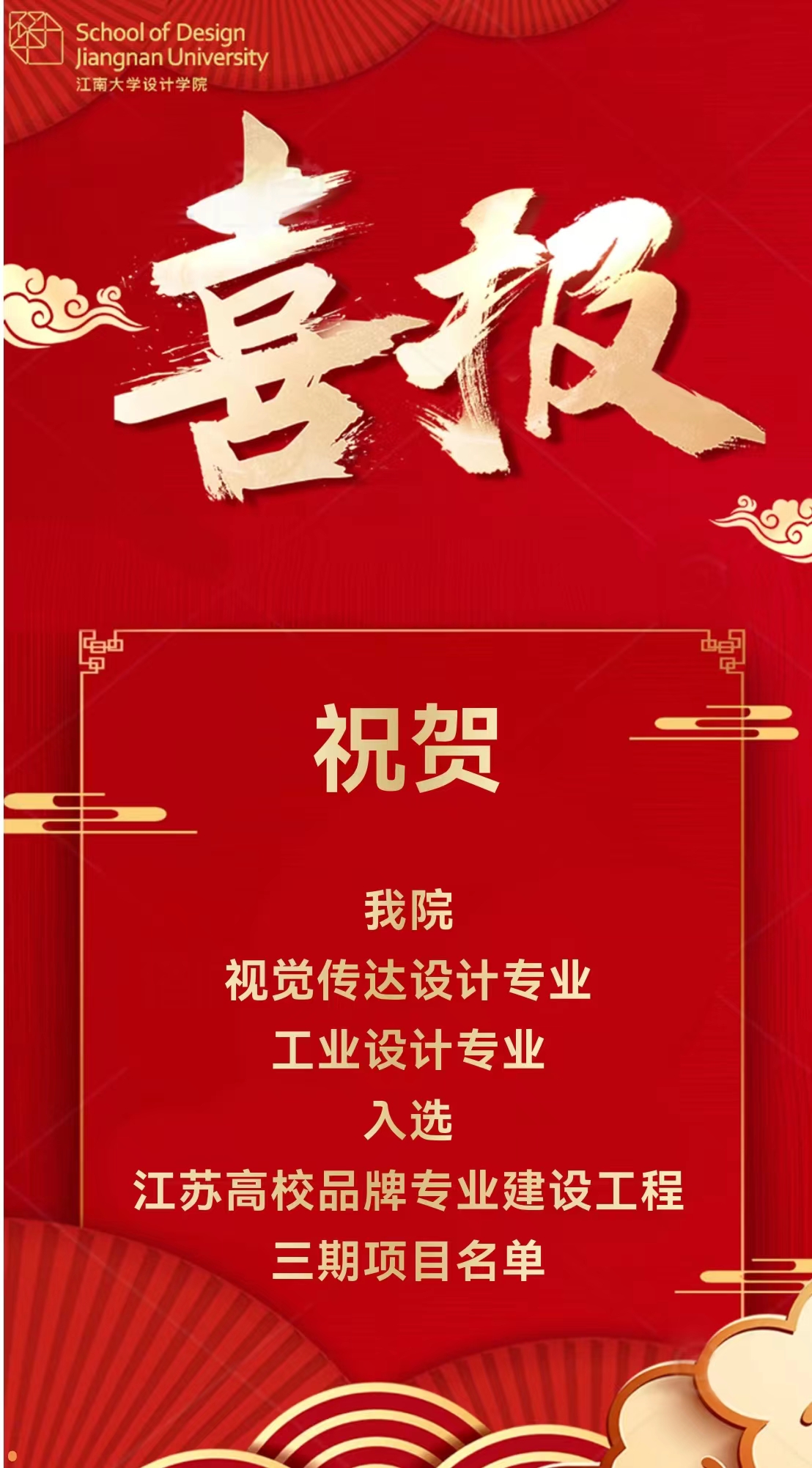 近日,省教育厅公布江苏高校品牌专业建设工程三期项目名单,我院视觉传达设计、工业设计专业成功入选。