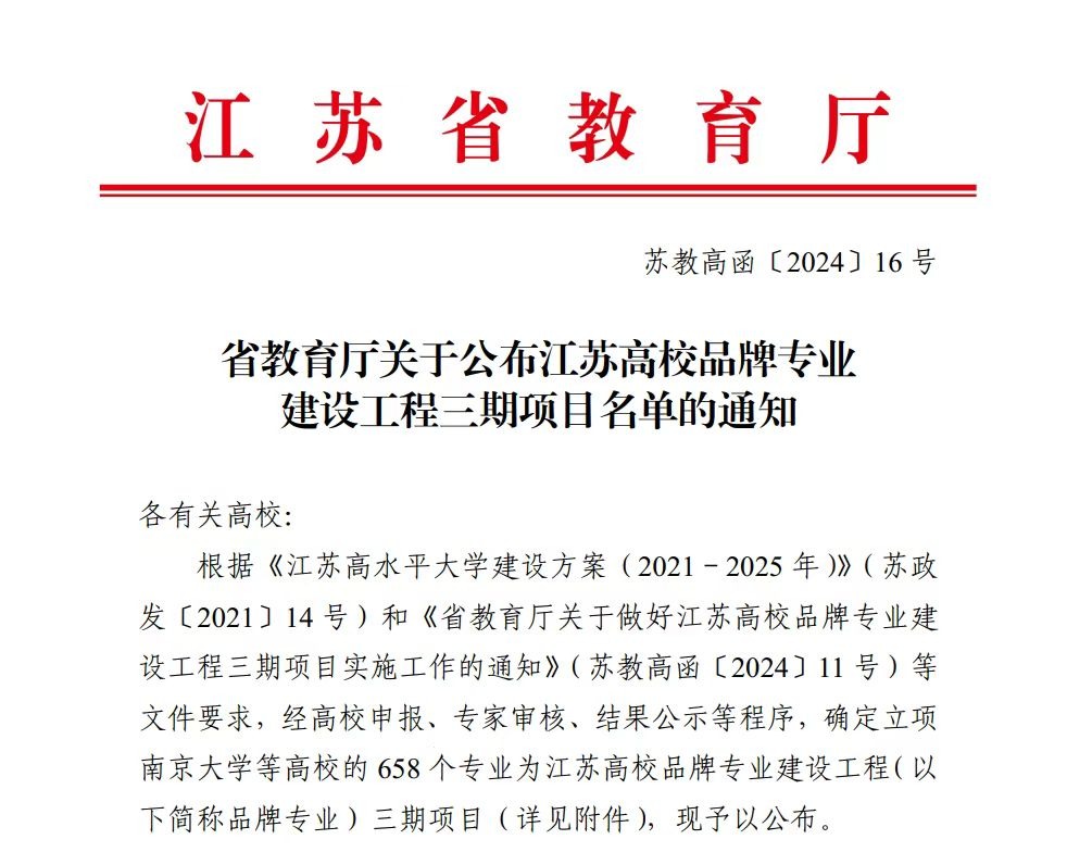 江苏高校品牌专业建设工程三期项目由省教育厅实施,目标是到2027年在全省建成一批体现江苏特色、代表一流水平、具有重要影响力的优势专业集群,打造服务需求、优势突出、结构合理的品牌专业体系,为高标准建设高等教育强省奠定坚实基础,为打造具有全球影响力的产业科技创新中心和因地制宜发展新质生产力提供有力支撑。
