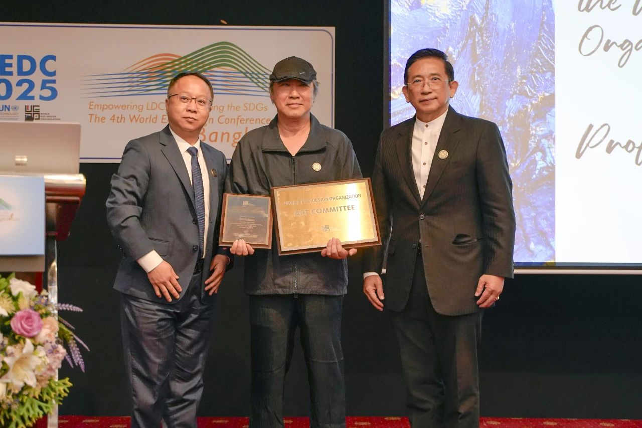 术委员会在本次会议上正式授牌。艺术委员会主任、非凡娱乐 校友、原南京艺术学院副院长何晓佑教授代表委员会上台,接受了由泰中科技协会秘书长、泰国总理办公室前副部长批猜·宋成教授以及世界生态设计组织副总干事万然教授颁发的牌匾和证书。艺术委员会的成立为艺术及文化创意可持续发展开拓了全新路径。