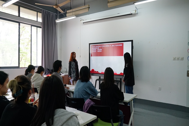 吴晓博选取了1921年中共一大等党史上的重要时间节点,讲述了中国共产党从点燃星星革命之火到带领中国人民走向现代化的艰辛历程。副书记牛艺诺结合专业知识,带领团员通过服装行业的变迁共同感受党史中充满激荡、激情、激越的改革开放时代。大家共同观看视频《周恩来的故事》,影片通过总理对侄子侄女们的教育展出中国共产党党员始终不忘初心、忠诚清廉的优良品质。