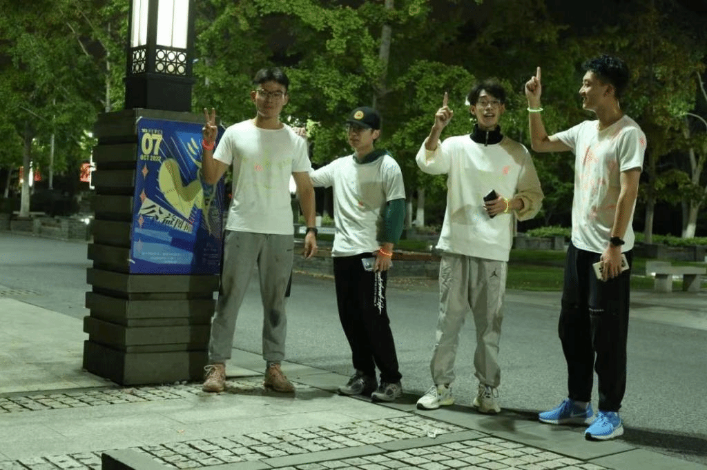 本次跑步路线覆盖校园内多处点位:西北操场点位A-中心体育场-图书馆-赤马咀遗址-西北操场点位B,全程2公里。跑步过程中完成游戏打卡,并获得印章积分奖励。10月7日晚,随着夜幕降临,同学们来到体育中心,发挥专业特长用准备好的荧光涂料在白衬衫上创作奇思妙想。荧光装备穿戴完毕,运动轨迹另成星海,同学们奋力奔跑,在江南大学的各处留下闪亮的踪迹。