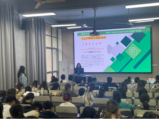 A506举办诚信考试主题教育班会,以提高同学们的诚信意识,严肃考风考纪。班会开始前,全体同学在班委的带领下签订了诚信考试承诺书,郑重承诺杜绝考试作弊行为。视传2203班李佳颖和视传2204班缪言向同学们传达了考风考纪相关要求以及考试作弊处分的相关条例,并通过解读往届学生因考试作弊被处罚的通报案例来强调诚信考试的重要性。此外,视传2202班刘佳琬蓉和视传2204班郑欣带着同学们领学《学生手册》中关于诚信考试的相关要求。