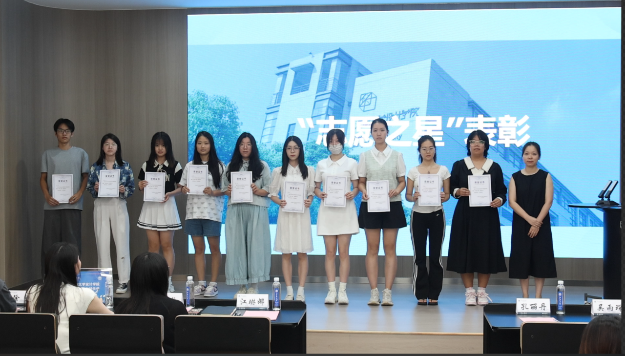 学生代表的誓言铿锵有力,道出了全体实践队员的心声。仪式上,学院还对年度“志愿之星”进行了表彰,由吴雨琛颁发“志愿之星”证书。他们服务社会的生动足迹激励着即将出征的学子们。