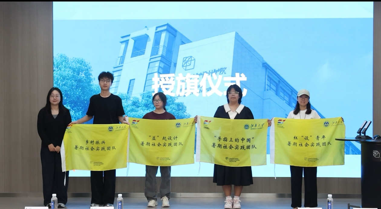 授旗仪式将现场气氛推向高潮。王牧将象征着使命与担当的鲜红队旗郑重授予团队代表。翻涌的旗浪映照着青年学子坚毅而炽热的目光。“这面旗帜是召唤,是责任,更是我们设计人服务国家、服务人民的庄严承诺!”