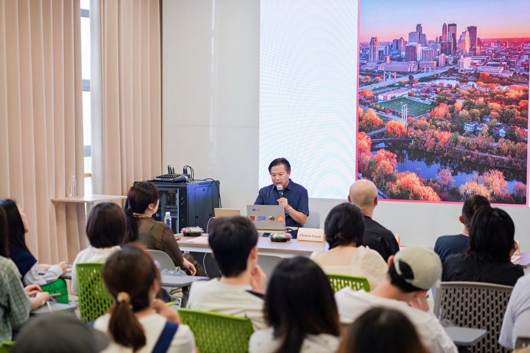 工作坊以“跨文化视角下表现性艺术的创作探究——材料观念和情感表达方法”为主题,由徐晴、胡心怡负责,邀请美国明尼苏达州立大学终身教授、全美华人美术教授协会主席Zhimin Guan教授指导。Guan教授分享了不同文化背景下表现性艺术的创作理念与实践案例,探讨了材料、观念、情感、象征和个人主题的融合路径,并通过徽派建筑与工业材料的创新结合示范传统元素的当代转化。工作坊拓展了学生的国际艺术视野,提升了跨文化表达能力。