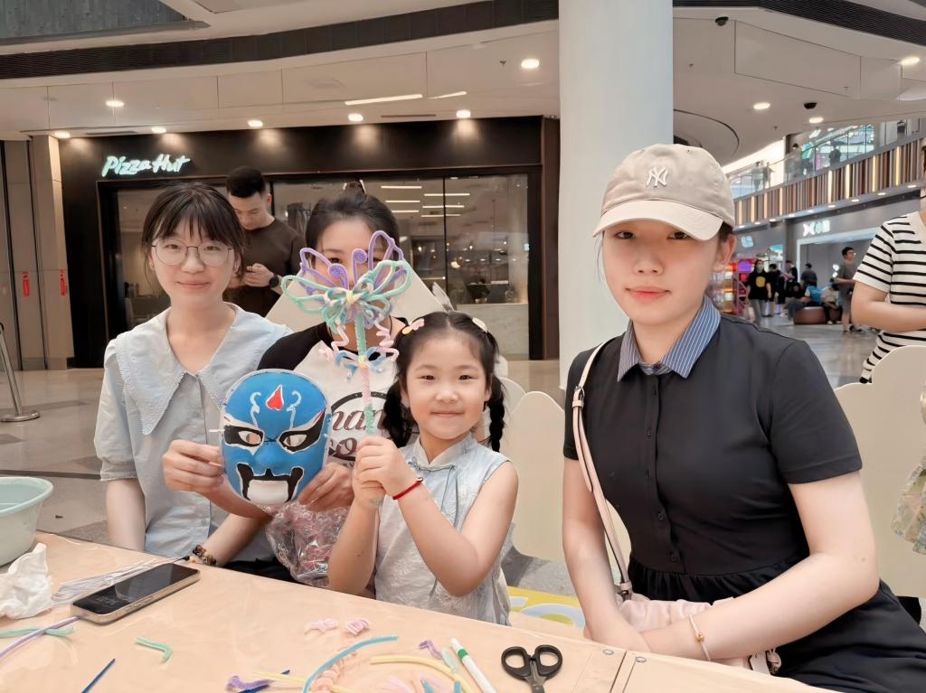非遗主题活动现场氛围热烈而温馨,活动开业就吸引了商场游客参观,小朋友们积极投入课程学习。 在绒花扭扭棒制作体验区,大家利用色彩缤纷的扭扭棒,在老师和残友搭档的耐心指导下,学习基础的制作技法,体验将柔软材料幻化为精致艺术品的奇妙过程。