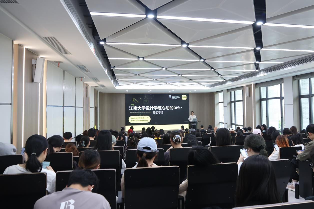 沙龙中,主讲人再次解读设计岗位矩阵,帮助学生明晰体验设计师、创意设计师以及AI创新岗位等前沿领域的职业发展路径。在互动环节,学生们踊跃提问,围绕“AI时代设计师的核心竞争力”“美团国际化业务设计挑战”等话题与美团负责人展开热烈交流。