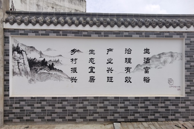 组建“艺”心向党·“乡”约振兴实践团。团队充分发挥学生艺术专业优势,聚焦“乡村振兴”“脱贫攻坚成效”和“河口自然风光”等主题,结合墙体环境、路况、产业文化等实际情况,设计、绘制了七面以清新淡雅的写意山水画为特色的文化墙,并呼吁受助的江南学子积极参与其中,让废弃墙体重新获得生命力,有力推动河口镇新农村示范点建设,为乡村振兴谱写艺术篇章,为美丽乡村贡献设计力量。墙绘成果受到了当地驻村干部、村民的一致好评,不时引得行人注目参观。
