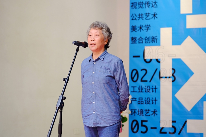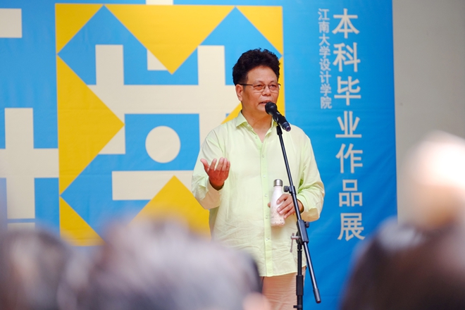 原江南大学副校长王武致辞,她认为本次毕业设计作品展很好的体现了“设计未来·融”的理念,毕业生们用作品表达了对未来的思考,展现了师生们对未来设计的解读,同时也希望同学能够更加关注尖端领域,探索设计在科技与工程中的服务与运用。