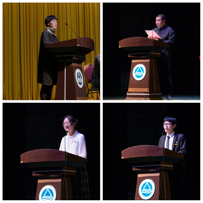 服装工程2001班蒋阗行代表本科新生发言,她愿同学们能够扎实基础,打破常规的思维,在追逐至善的人生路上永不停歇;希望同学们要以学习为主,学会自我学习,以更高的目标要求自我;愿同学们能在最好的时代引领属于他们的方向。设硕2007班赵振皓代表研究生新生发言,他希望新生们能够保持大学生涯的那份好奇心和求知欲,跳出思维束缚;吸收学习新的知识以及技术,保持设计学科交流的特色,为非凡电子娱乐平台