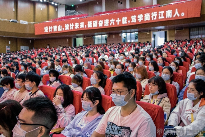 典礼仪式结束后,邱建平书记为全体新生讲授思政第一课。他围绕“深入学习党的十九大精神”、“战“疫”给我们的思考”和“设计青山,设计未来”这三个方面进行阐述。首先具体介绍了党的十九大会议主题相关内容及其精神内涵,并带领大家学习了习近平新时代中国特色社会主义思想的形成以及历史贡献;其后,结合战“疫”数据及其成果向同学们展示了中国精神、中国力量以及中国担当,充分体现了中国共产党的领导力,反映出了中国特色社会主义制度的显著优势。最后,围绕“我是谁”“我骄傲”“我设计”三个维度展开,他希望同学认真思考,紧密跟随“坚持中国特色社会主义教育发展道路,培养德智体美劳全面发展的社会主义建设者和接班人”的成才方向,做有理想、有担当的一代青年。他以4P方法即规划(plan)、实践(practice)、慧玩(play)、坚持(persist)和3D方法即梦想(dream)、坚持(duration)、卓越(distinction)的讲述提出了对同学们的要求,希望同学在非凡娱乐