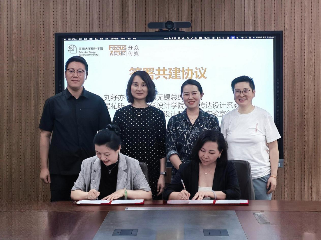 “场景创新增长研究中心”由分众传媒副总裁浦江与江南大学社会科学处副处长沈张帆共同揭牌,标志着双方在新消费场景创新领域的合作正式启动。随后,分众传媒无锡总经理刘纾亦与吴祐昕教授签署了共建协议,明确了双方在资源整合、项目孵化、技术研发等方面的合作框架。