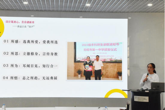的发展历程和荣誉成就,让同学们感受江大悠远而博大的发展脉动,寄语同学们做到以下三点:突破学科交叉的沟壑、冲破探索新知的束缚、扛起为民设计的担当,鼓励大家在设计中寻找科技与人性有温度的平衡、坚定文化自信,在服务国计民生中展示自我、成就自我,为实现中华民族的伟大复兴贡献自己的力量。陈校长的思政课生动平实,深入浅出,陈校长的桃李之心,耿耿忠诚,教育之言,句句深情,让在场师生见识到一位学者的风范、智者的通达、长者的温情。现场的热烈掌声传达了师生们对陈校长由衷的敬意与爱戴,同学们对设计的初心与使命有了更理性的认识。