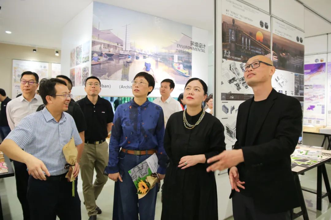 教授陈庆军、同济大学设计创意学院媒体传达副主任梁靖、湖南大学设计研究院副所长李莎莎,学院领导江琳娜副书记、廖曦副院长、胡伟峰副院长,各系部主任、教授和指导老师共同出席了开幕式。