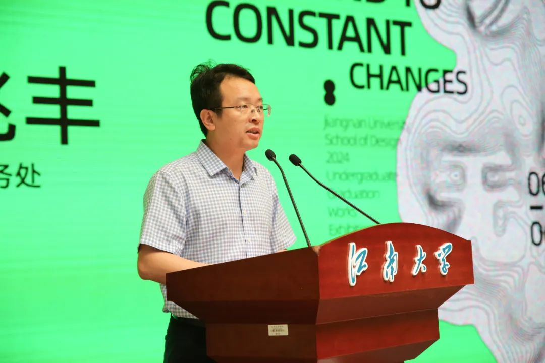 产品设计系钱晓波主任作为指导教师代表发言。钱主任表示同学们应以独特的视角、敏锐的感知力,以及扎实的专业技能,探索设计与环境、与社会、与文化的深层联系,创作出了一系列既富于创意又蕴含深意的作品。她认为站在这里的每一位毕业生都如同一颗颗璀璨的新星,即将在各自的领域发光发热。希望同学们带着在非凡电子娱乐平台