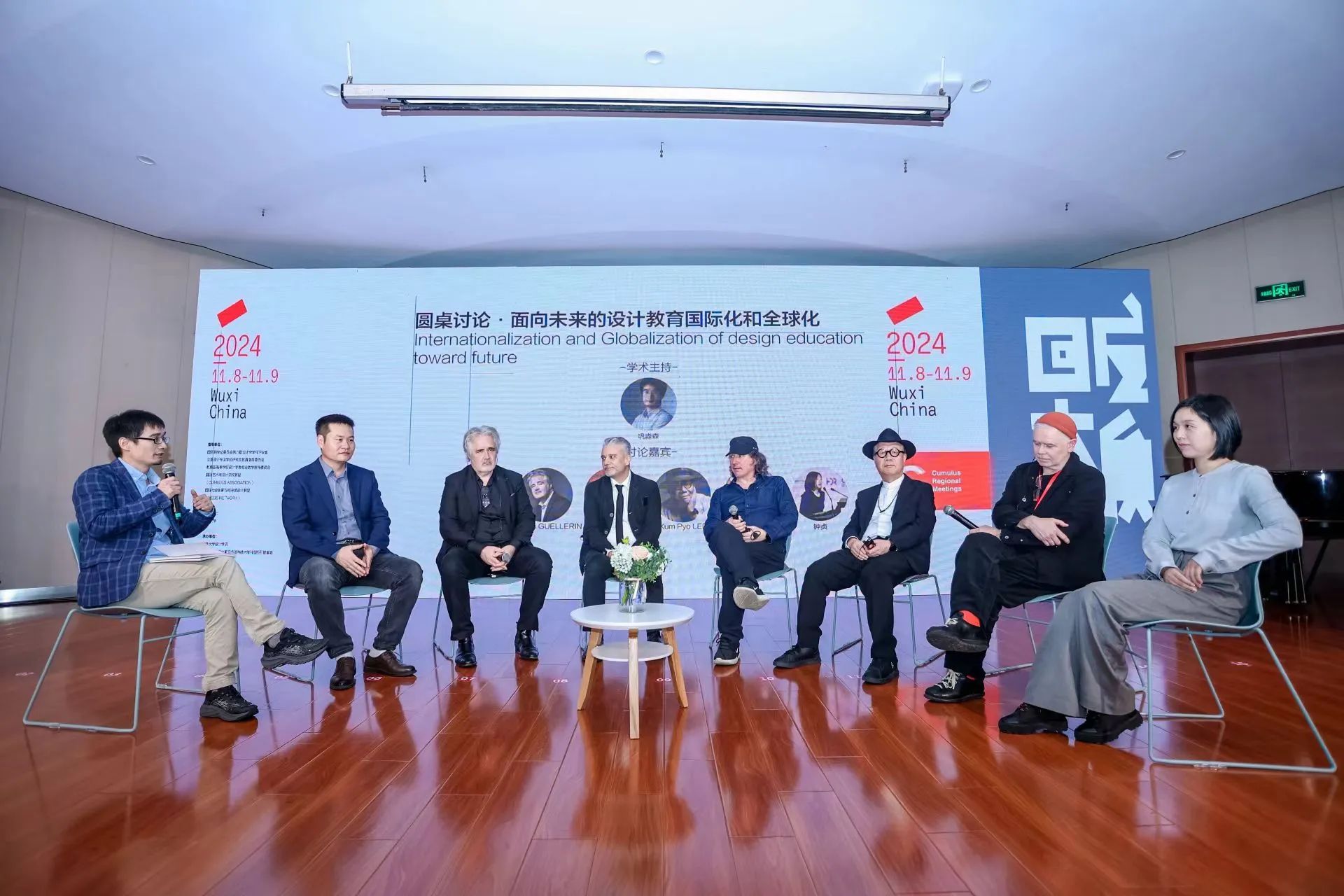 圆桌讨论1以“面向未来的设计教育国际化和全球化”为议题,由巩淼森副教授主持,Lorenzo Imbesi主席、Christian Guellerin 教授、Kun Pyo LEE教授、Gianni Corino教授、Mike Phillips教授、胡伟峰教授、钟贞副教授共同参与。与会嘉宾对设计教育的现状与挑战,跨学科融合的重要性、技术进步的影响、校企合作中的实践机会、培养可持续发展意识等问题进行深入探讨。讨论强调了设计教育需要适应快速变化的全球环境,通过跨学科合作、技术整合、实践经验和国际视野的培养,为学生提供全面的教育,以培养能够适应未来挑战的设计人才。