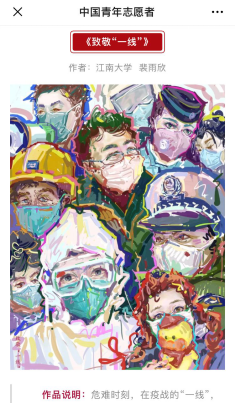 习近平总书记指出,生命重于泰山,疫情就是命令,防控就是责任。对于广大青年学子来说,这就是冲锋的号角,有万钧之力。疫情当前,设计学子心系一线,以艺抗疫,以画绘心,奋战的脚步从未停歇。没有一个冬天不可逾越,没有一个春天不会来临。我们坚信,在以习近平同志为核心的党中央正确领导下,疫情终将被战胜,胜利终将会到来!