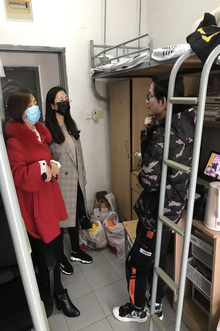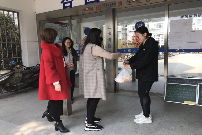 暖心帮扶,传递温暖情怀。学院建立“湖北籍学子一对一”帮扶群,学院辅导员与湖北籍贫困学子逐一联系沟通,了解学生身体健康和心理状态,掌握存在的困难与问题,及时做好心理疏导与关怀。学院领导、辅导员深入学生园区慰问留校学生,对留校家庭经济困难同学送上疫情防控用品,仔细询问生活等方面存在的问题,提供必要的帮助。对于确诊感染的同学,学院领导老师保持密切联系沟通,鼓励他坚定信心,战胜疫情,温暖关怀。