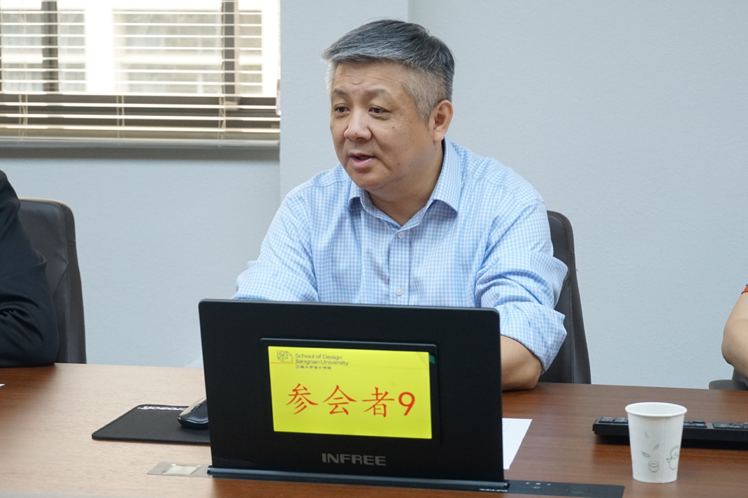 产品设计系主任、中外合作办学项目负责人邓嵘随后汇报了江南大学同英国普利茅斯大学中外合作办学机构筹备的进展情况,从组织构架、理念特色、师资配备及安排、专业方向设置及专业特色、近期沟通情况进展等进行了汇报。