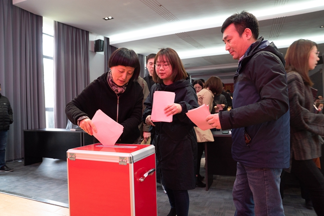 大会以无记名投票的方式进行差额选举。监票人杨永俭宣布计票情况及结果,学院教职工投票选举出张影陆、邱建平、魏洁、王晖等19位同志为江南大学第五届教代会暨工代会代表。