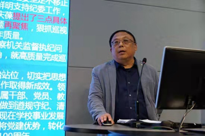 邱建平书记传达学校全面从严治党会议精神并做学院总结和规划