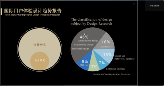 的李瑞博士做了题为“新文科思维驱动下的用户体验设计”的演讲,他的演讲用可视化的方式呈现了国际用户体验设计领域的研究趋势和热点,并分享了三个聚焦于汽车和驾驶情境交互体验的设计研究案例。