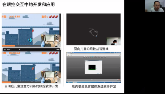 最后一场演讲来自东南大学的牛亚峰博士,演讲主题为“眼控系统页面元素工效学评价研究”。他从眼控系统的两大科学问题“米达斯接触”和“低空间精确度”入手,重点针对凝视、眼势、平滑跟踪、眨眼等输入指令,分享了最新研究进展,包括眼控系统中界面元素的最优视觉表征和工效学评价,新型眼控方式及其应用等内容。