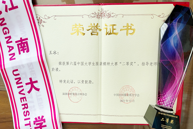 本次大赛汇聚了东华大学、北京服装学院、浙江理工大学、天津工业大学等60余所高校的100余名选手参加。经过前期材料审核、线上选拔入围,最终在深圳举行总决赛。比赛分综合素质测评、平面拍摄、T台休闲装、泳装和礼服展示等若干赛项,大赛组委会邀请国内外资深模特专家教授、名师、名模、摄影师和造型师等业内专家担任评委。经过三天的激烈角逐,服装系表演1801班王冰同学荣获大赛二等奖,於凌老师获得最佳指导教师称号。