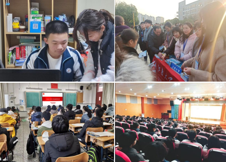 朱荟雯、李枚倩、王慧、于濮源等同学回到高中母校,通过播放江南大学宣传片、讲解精心准备的资助政策PPT、发放资助宣传材料、建立答疑微信群等方式,结合亲身经历介绍国家的资助政策和我校的资助工作,为“准大学生”们扫清经济压力的担忧,筑梦高考。