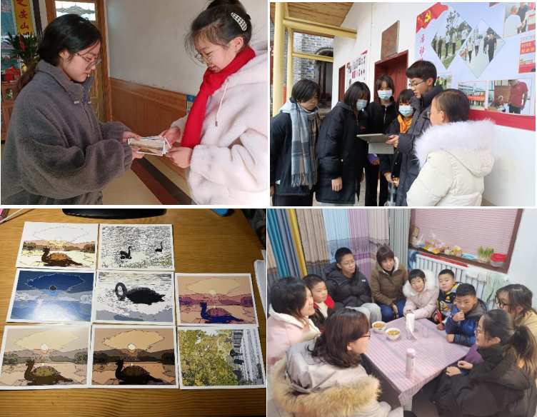 林简同学走访村里的困难学生家庭,根据同学们的实际情况讲解资助事宜,以亲身经历表明资助政策的重要性;倪悦进入困难家庭宣传走访,鼓励其树立生活的信心,以积极乐观的心态去面对生活。为了能拉近与家庭经济贫困孩子们的距离,她根据校园里的景色与地标建筑,设计了八张明信片,赠予同学们,以期帮助他们更好地认识江南大学,同时,希望通过校园美丽的景色和生活激励学生们将来考入向往的大学。