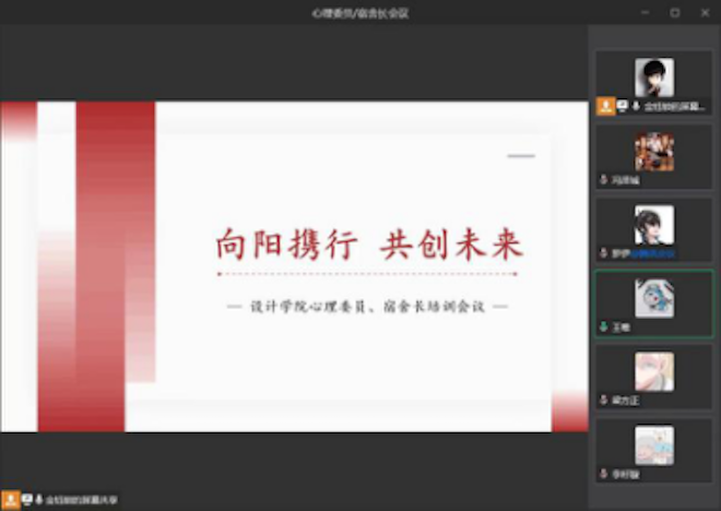 辅导员王唯和金钰锁组织开展了心理委员与宿舍长培训会议,就近期学生心理工作进行了培训与交流,会议线上线下同时进行。王唯介绍了常态化疫情防控形势下大学生的精神心理特点、常用的心理评估和干预方法、保持心理健康的手段和方法等方面知识,提醒心理委员、宿舍长应该提高心理健康知识的掌握与运用能力,发挥同学间朋辈自我帮助、互相帮助的作用,加强预防干预能力,切实做好基层心理保健员。金钰锁介绍了近期学校的疫情防控安排和注意事项,并鼓励同学们积极召开心理主题班会和参加“向阳携行,共创未来”心理主题书画大赛,展示自我,分享快乐,以积极向上、理性平和的良好心态共克时艰。会后王唯与线下参会同学进行了交流,深入了解同学们的需求和关切所在,掌握学生的思想动态,以更好地给予学生帮助与指导。数艺2102班心理委员冯泽城表示,通过此次培训与交流,更加清楚地认识到了自己心理委员的定位与作用。在常态化封闭管理模式下,同学们难免会有些负面心理,作为心理委员更应该用科学合理的方法去疏导,将正能量和希望传递给身边同学,也要帮助同学合理宣泄不良情绪。