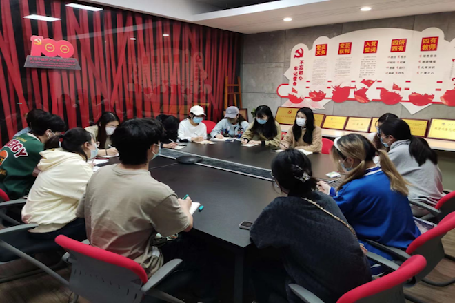 会上,团支书代表反馈了在疫情防控及团工作中遇到的困难,主要包括日常物资补给、集体活动开展、线上教学不便等方面。吴雨琛老师针对同学们提出的问题进行了详细解答,并针对同学们关注的热点问题给出具体可行的解决方案。同时布置“喜迎二十大、永远跟党走、奋进新征程”主题教育、庆祝建团100周年等相关工作,鼓励团干部勇当先锋,做出表率,为战胜疫情贡献出自己的力量。美术2102团支书唐佳仪同学表示将遵循老师的建议,解决团工作中遇到的问题,并且继续认真引领同学们做好疫情时期的团工作建设。