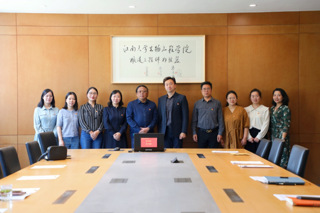 党委书记邱建平、党委副书记王晖、专职组织员陈祥洁、分团委书记吴雨琛、辅导员章琳等一行五人赴生物工程学院调研学习,生物工程学院党委书记王维、副书记周云龙、党委专职组织员胡博、辅导员陆燊佳等出席调研会。