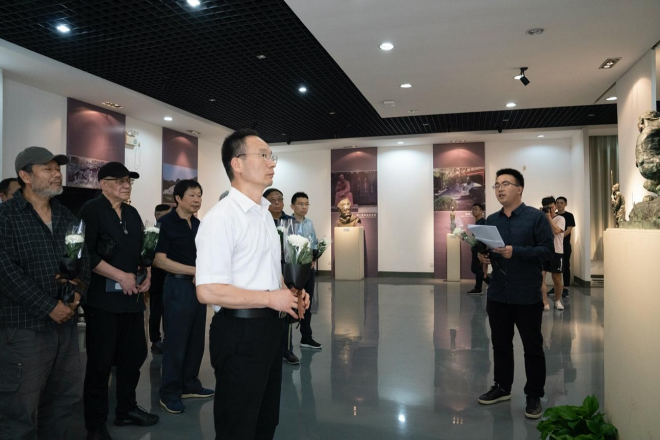堵国成首先代表江南大学全体师生向钱绍武教授敬献了鲜花,全体与会人员鞠躬默哀。随后,参会人员共同参观了钱绍武教授的雕塑、素描和书法作品,再次感受钱绍武教授的大家风范。