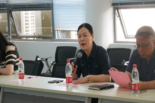 交流环节,环艺1801班班主任杜守帅、服艺1802班班主任徐亚平、视传1801班班主任吴祐昕针对就业、升学、思想引领等主题进行分享与经验交流。