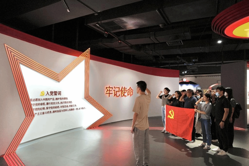 学院一行人首先参观了海澜党建文化馆,了解了海澜集团创业历程。通过丰富的文字和图片资料,大家深切感受到海澜集团一直以来,始终把赤诚的红色作为发展的底色,以党建引领企业发展,坚守实业报国初心,在服装行业坚挺30年、不断涅盘重生的发展历史。参观过程中,学院师生党员重温入党誓词,激发全体师生党员的荣誉感、责任感和使命感,砥砺入党初心。