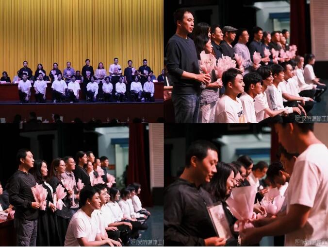 班主任是学生思政工作开展的中坚力量,对于新生引领和学生管理起着重要作用。在开学典礼中融入新生班主任聘任仪式,可以营造浓厚的尊师重教氛围,增强新生的荣院爱院意识。在全体新生的注目下,2022级新生班主任依次上台,从学院领导手中接过班主任聘书,正式受聘。人民教师,无上光荣,教书育人,默默坚守。学生代表手持鲜花登台,为新聘班主任献花表达尊敬。在全场的见证下,新生班主任老师为学生代表佩戴院徽,郑重欢迎设院新人的到来。