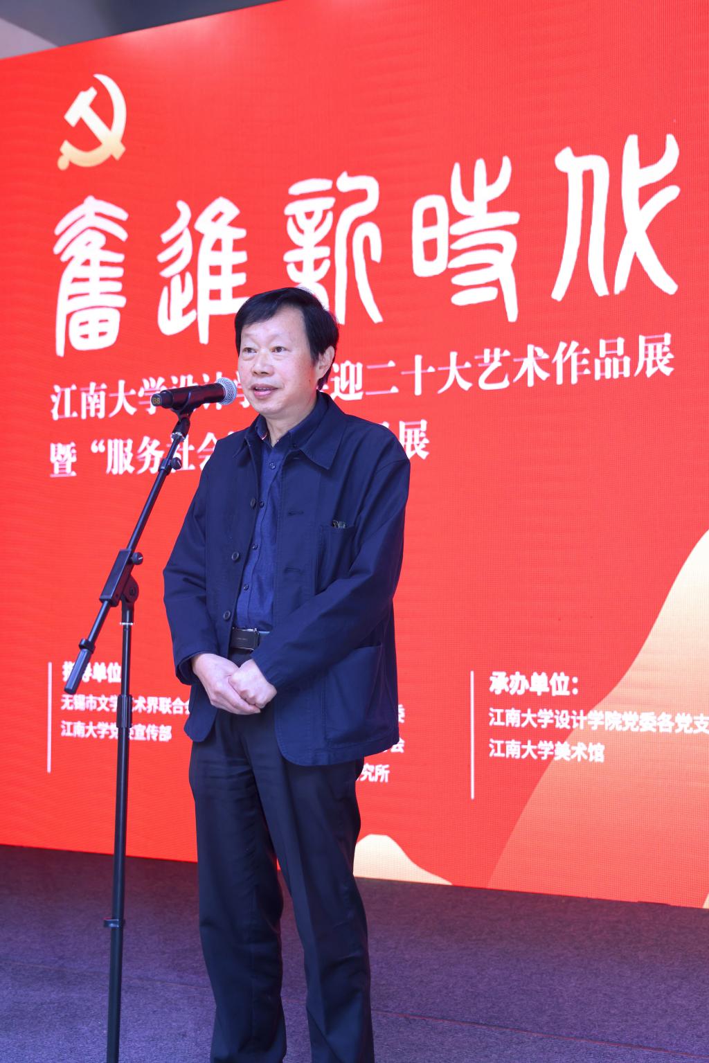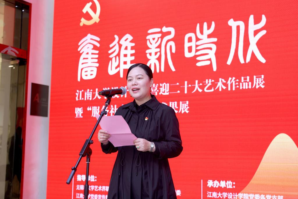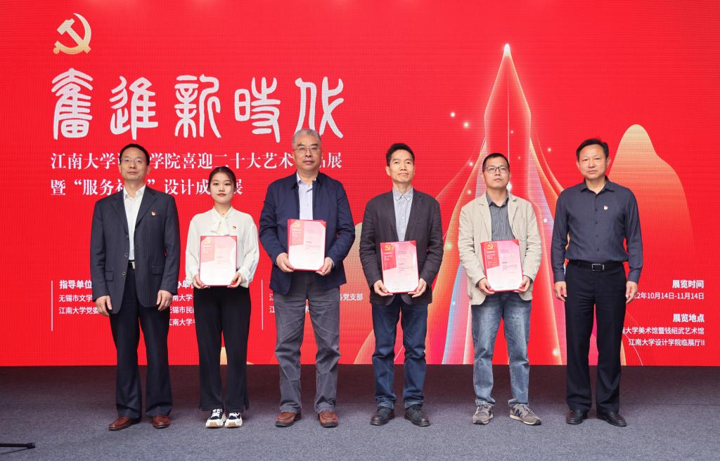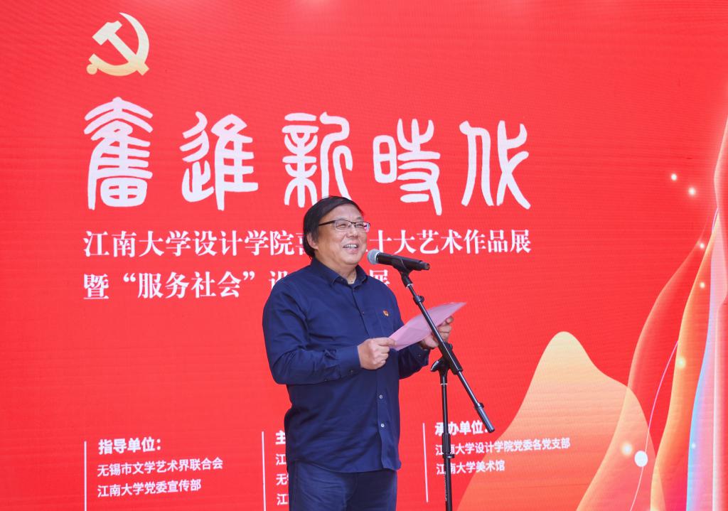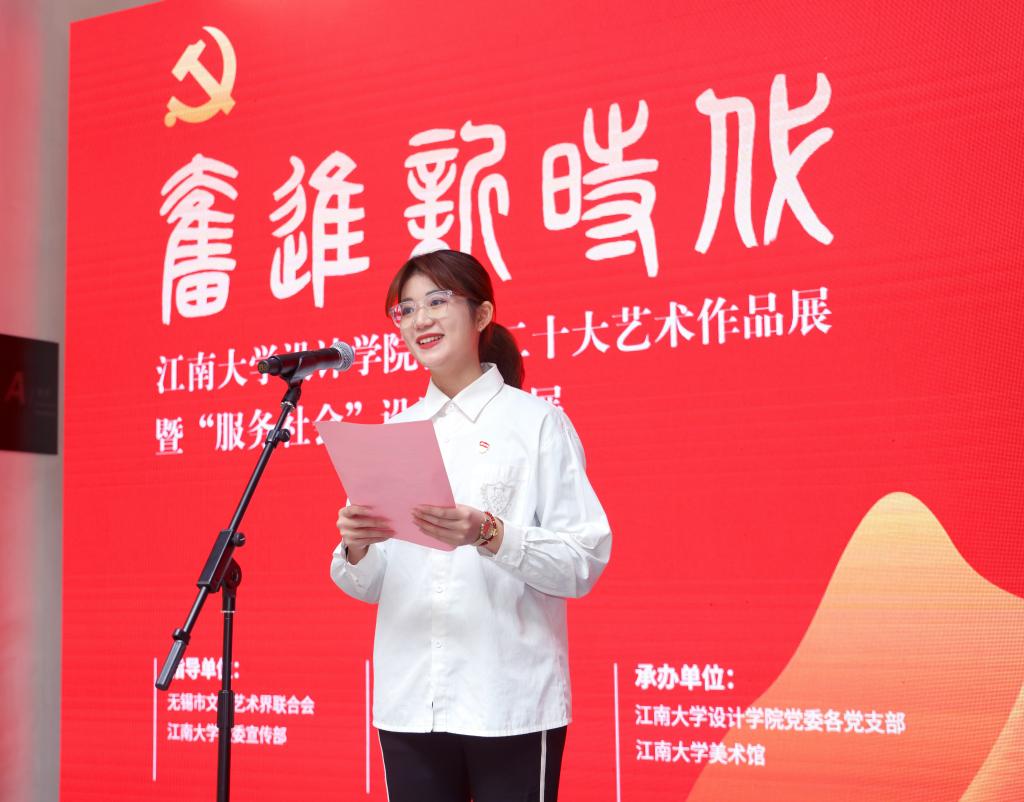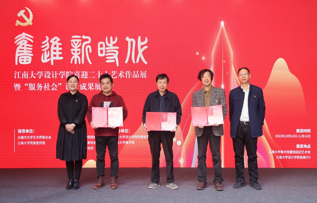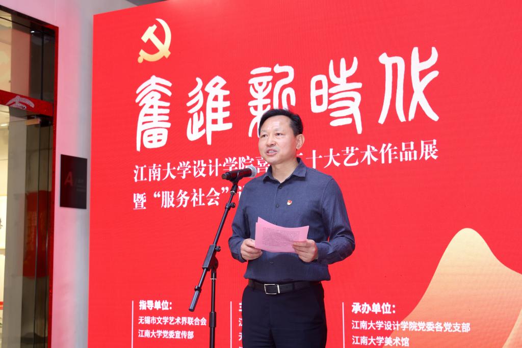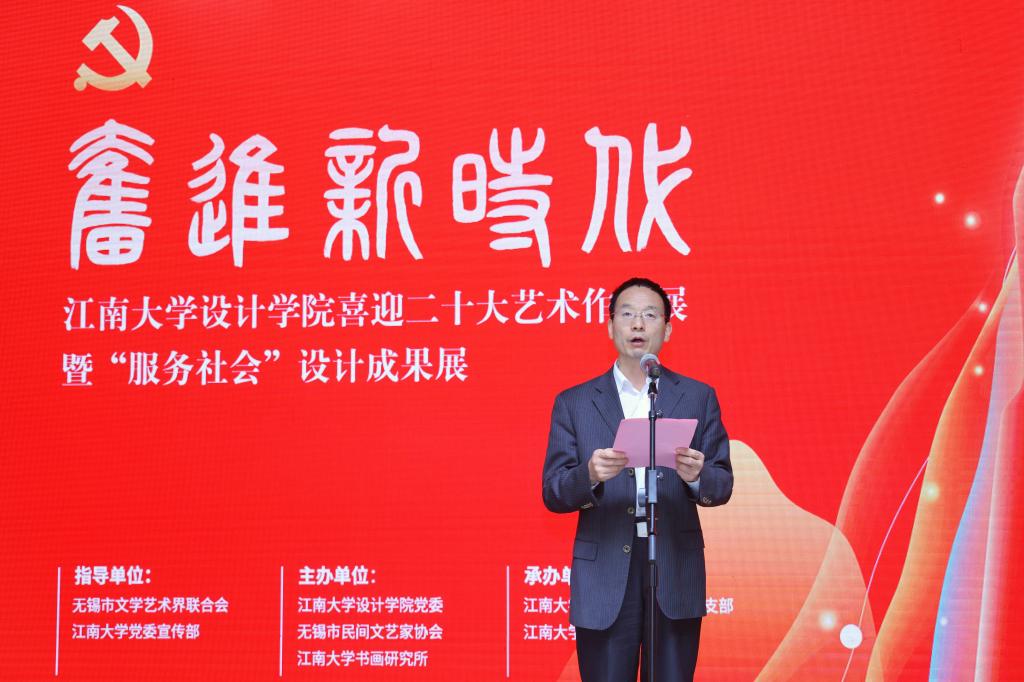 喜迎二十大艺术作品展暨“服务社会”设计成果开幕式于江南大学美术馆举行。江南大学党委常委、副校长堵国成,无锡市文联党组书记、主席杨建,江南大学党委组织部常务副部长方正泉,非凡电子娱乐平台