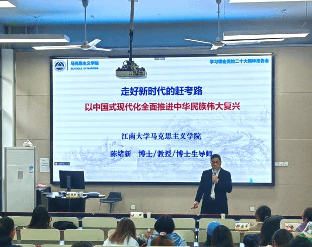 A104进行。本次党课的主题是“走好新时代的赶考路,以中国式现代化全面推进中华民族伟大复兴”,党课的主讲人为江南大学马克思主义学院教授陈绪新老师,非凡娱乐