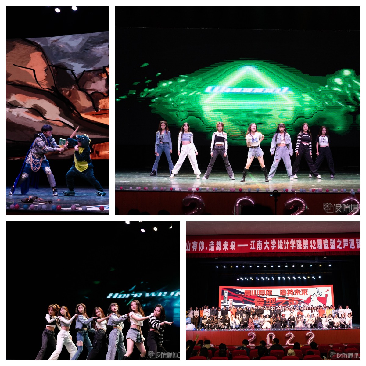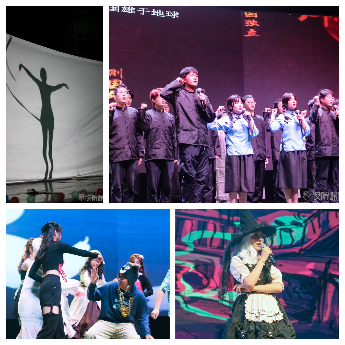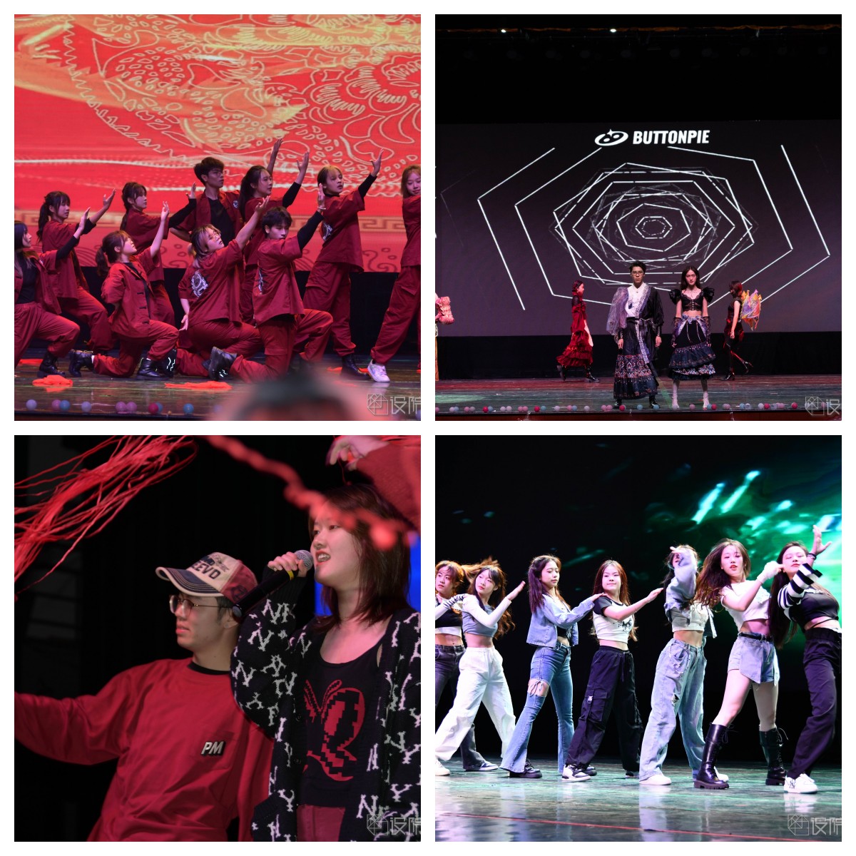朗诵《少年中国说》让我们满腔热血,情景剧《博物馆奇妙夜》别出心裁,歌舞《童年回忆》带我们梦回童年,《名画再现》上演《八女投江》的动人故事,幕布话剧《光映时代》起承中国百年路,转合民族奋斗史,《设院学生日常生活图鉴》上演“设院探戈”,舞台剧《达拉崩吧设院分吧》被全新演绎,《CHINA-X》服装系学生为我们带来一次精彩的走秀,文艺部带来娓娓动听的歌曲《昌》和令人惊艳的舞蹈《山河画卷》,在最激动人心的中场抽奖环节,一个个彩球抛起,随着“锦鲤们”的陆续揭晓,现场气氛在掌声与欢呼声中变得越来越热烈。新的艺术表演形式wota艺《万神花火》让我们眼前一亮,舞台剧《迪士尼后妈茶话会》演绎反派的魔幻童话故事,舞蹈《Helicopter》彰显青春风采,话剧《我们说好不内卷》带来一场反内卷小分队的“战斗”,勿氧器乐团带来的歌曲《海芋恋》温柔浪漫,话剧《反诈银行》上演爱国老人和正义银行的爆笑故事,设院同学们的合唱《有我》在歌声里彰显青春力量,A108cos社带来的《虚空劫火》更是燃爆全场,最后,非凡娱乐