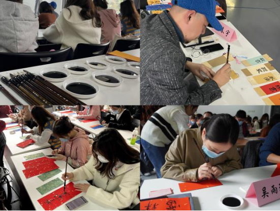 最后,回首过去,展望未来,同学们用毛笔和宣纸,写下对自己、对未来、对国家的寄语与祝福。“艺无涯,德有邻”表达了潘春雨副院长对各位同学的殷切希望,他指出党团共建活动是必要的,是党员发挥先进性的基本途径。要充分发挥党支部、团支部优势,以先进带后进,以悟思想为根本、以办实事为重点、以开新局为目标,继续发挥党员、团员模范作用。
