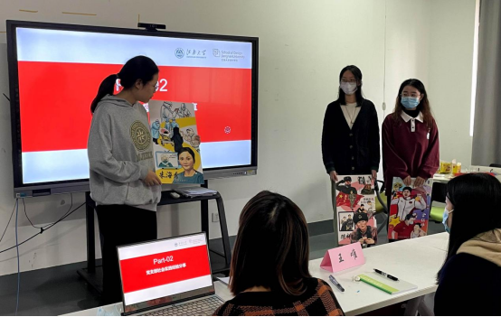 随后,本科联合第三党支部郭慧蕾、李卓媛、唐京媛同学依次展示分享自己的画作,用实际行动献礼党的二十大。她们以“冬奥”“抗疫”“感动中国”等社会热点主题为切入点,选取奥运健儿全红婵、戍边战士陈祥榕、白衣天使朱海秀三位青年楷模的故事绘制成人物画报。从她们的分享中让我们感受到,青春是用来拼搏的,青年人应当用汗水浇灌收获,以奋斗笃定前行,勇做走在时代前列的奋进者、开拓者、奉献者,让青春始终成为中原大地上朝气蓬勃的持久风景。