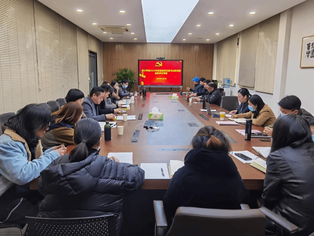 2022年度教工党支部书记抓党建述职评议考核大会在学院B314会议室召开。学院全体党委委员、全体科级干部、各支部委员参加会议。会议由学院党委书记邱建平主持。