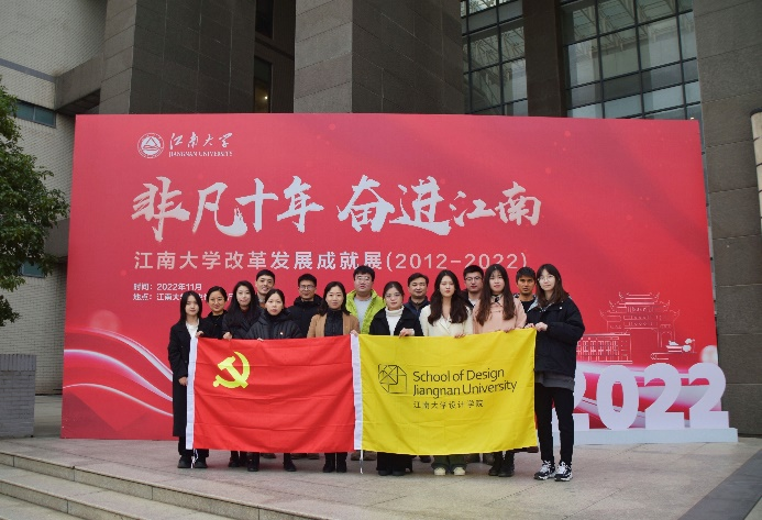 会议结束,学工办全体辅导员和支部委员们一同前往江南大学校史馆,参观江南大学“非凡十年奋进江南”江南大学改革发展成就展(2012-2022)。